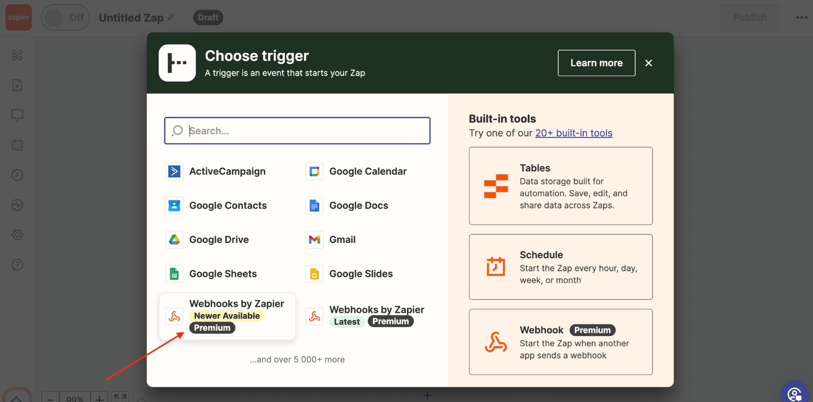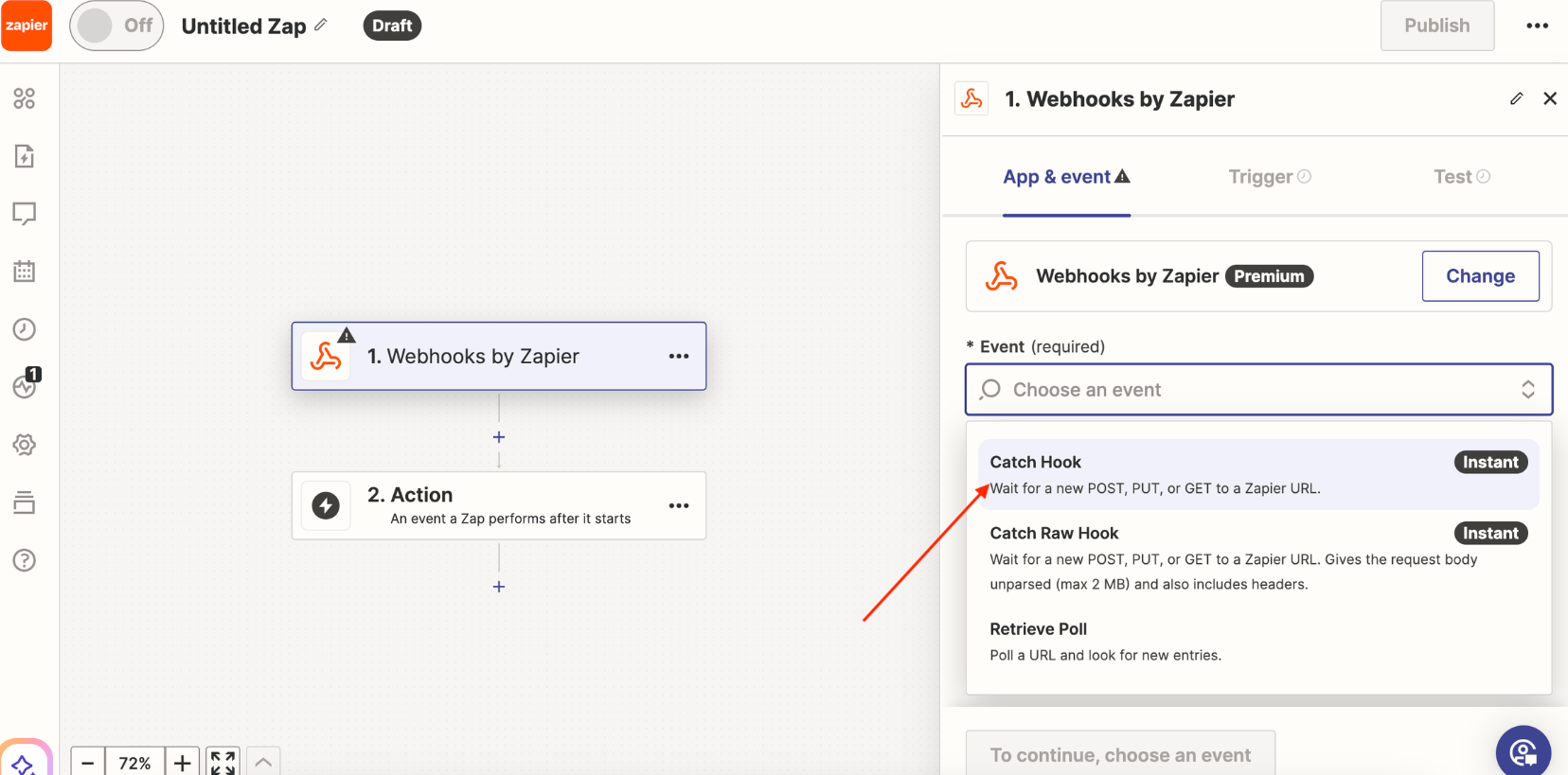 Select the connection type «Webhooks by Zapier».