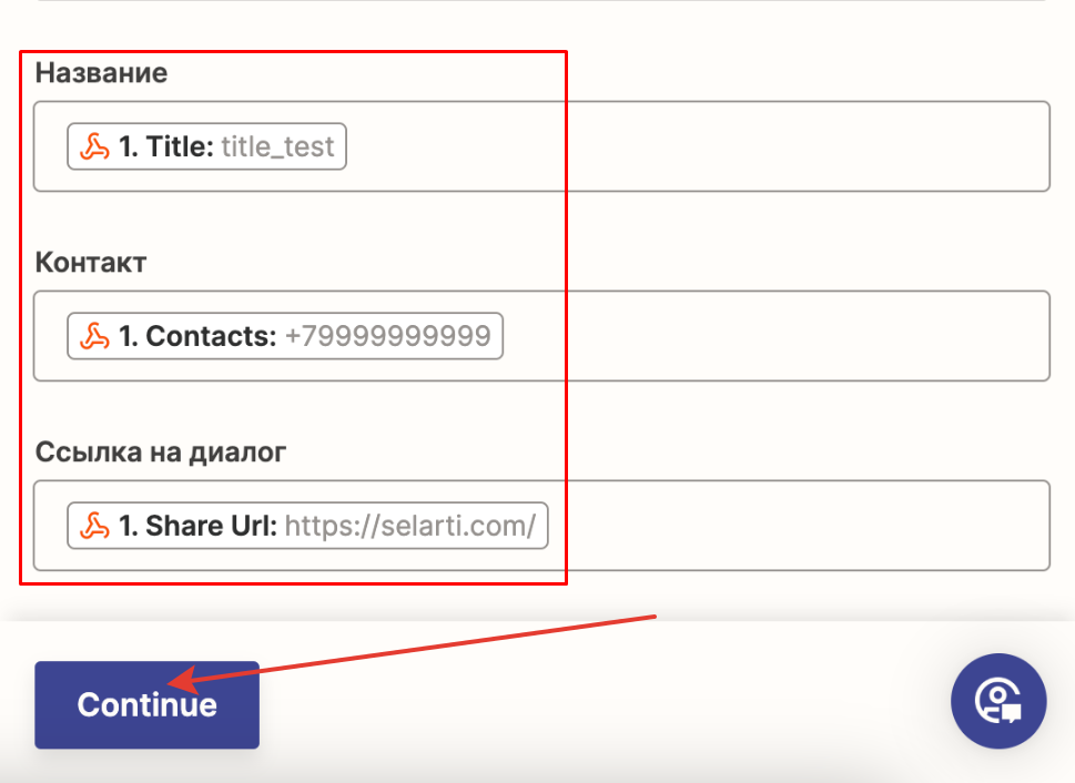 If you did everything correctly, available fields will appear in Zapier.