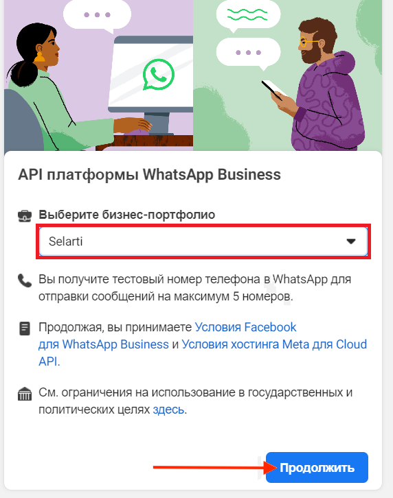 In the drop-down list, select the business portfolio and click «Continue».