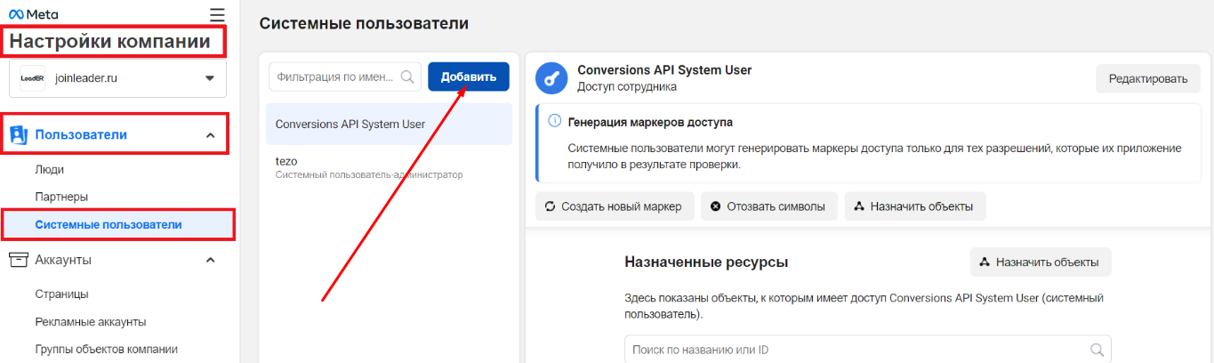 In the section «Company settings» go to Users > System Users section and click «Add».