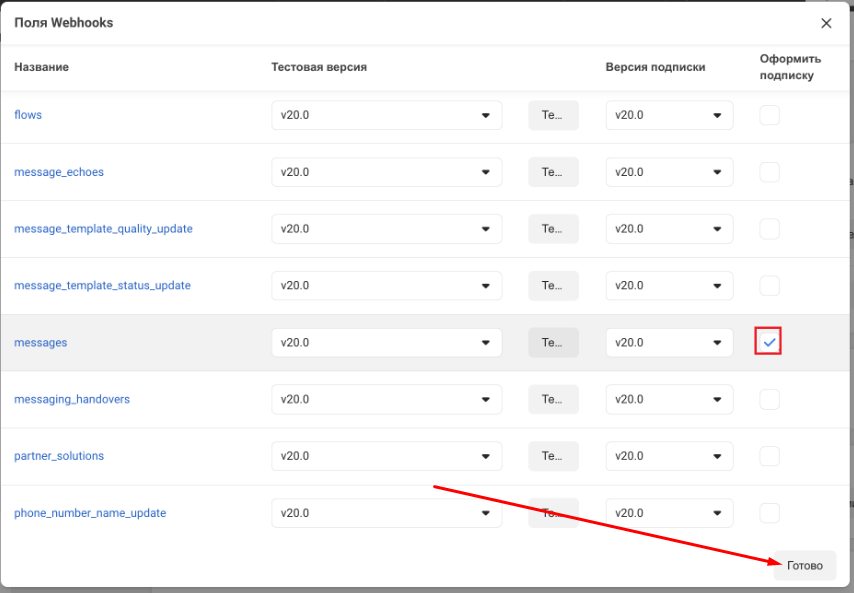 In the opened window, check the box next to «messages», then click «Done».