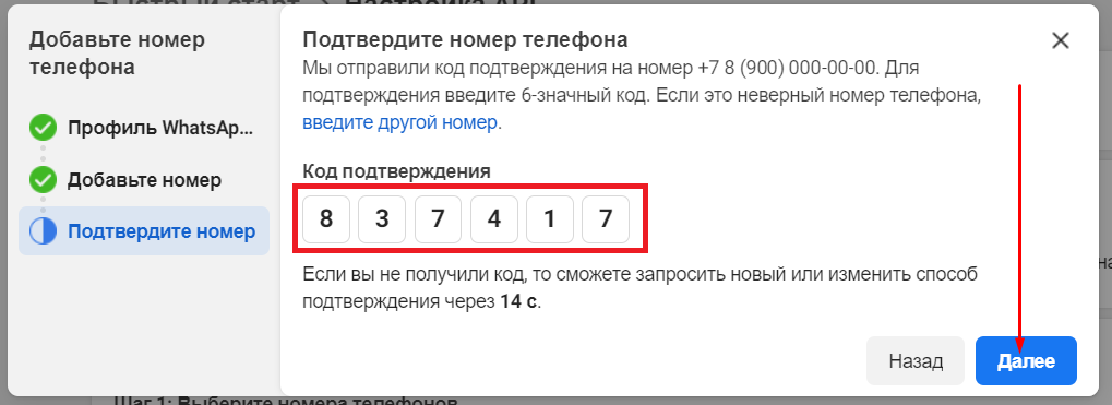 Enter the verification code from the SMS and click «Next».