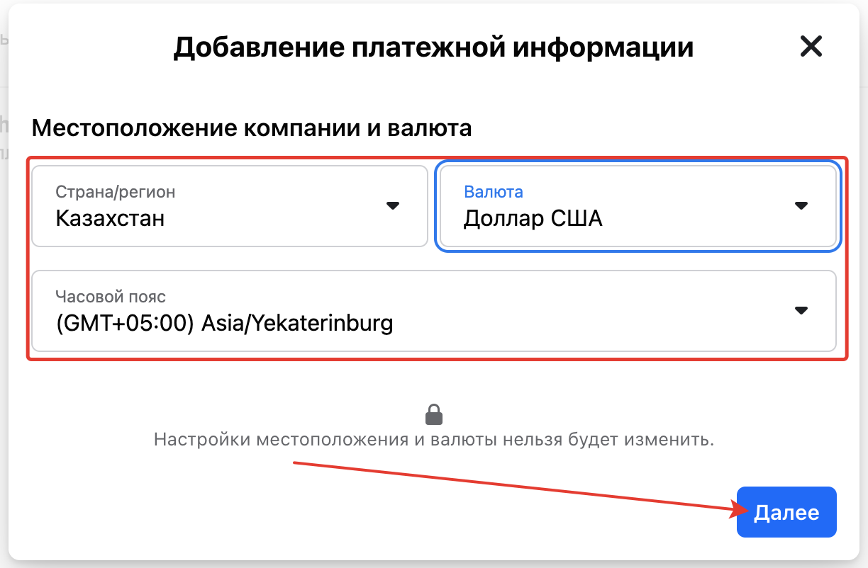 Select the country, currency, and time zone, click «Next».