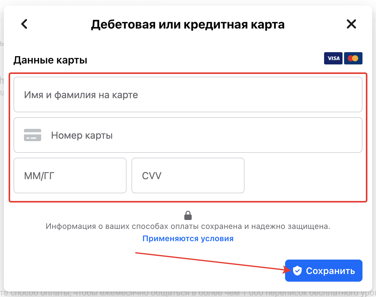 Enter card details, click «Save».