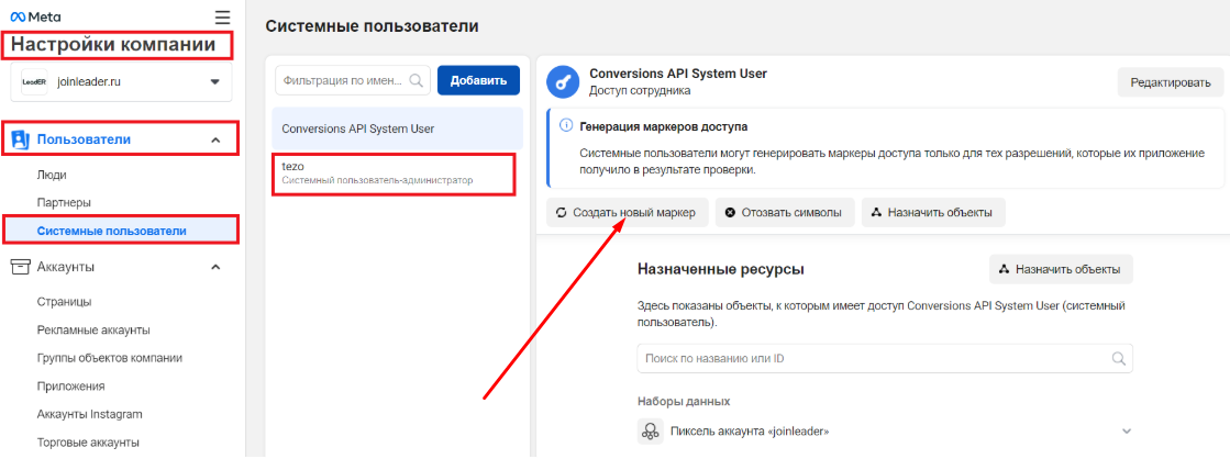 In the section «Company settings» go to Users > System Users. Select the previously created user and click «Create new token».