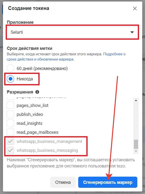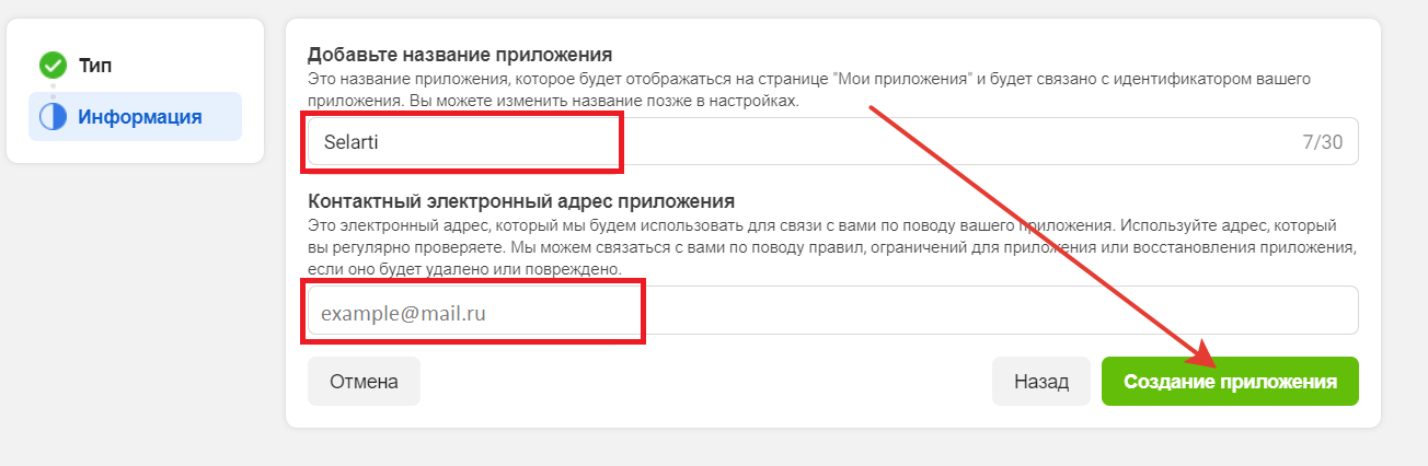 In the «Verify Token» field, enter: selarti_is_the_best_service.